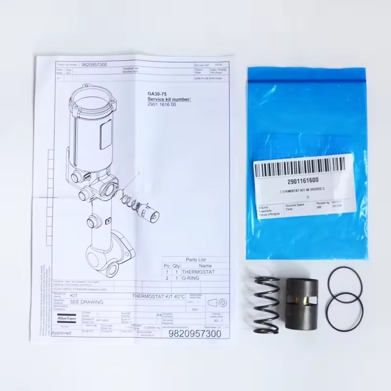 Air compressor's 2901161600 Atlas Copco temperature control valve: The set value of this temperature control valve has been pre-set at the factory. Non-professionals are not allowed to adjust it without permission. Otherwise, it will affect the safety of the equipment. When replacing the 2901161600 Atlas Copco, the specific model of the air compressor needs to be provided to ensure the compatibility of the accessories with the equipment. It is recommended to purchase the 2901161600 Atlas Copco through our official after-sales service to avoid secondary faults caused by inferior accessories. Reasonable maintenance of the 2901161600 Atlas Copco temperature control valve can effectively extend the service life of the air compressor, reduce energy consumption, and is an indispensable part of the daily maintenance of the equipment.
