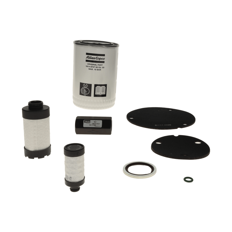 Atlas Copco 2906073900,This maintenance kit is used for machine repair. It is for Atlas compressor maintenance. To avoid downtime and save costs, it is necessary to ensure convenience and ease of use. Risks arising from equipment incompleteness can also pose risks. Therefore, the general part number is not for compressors or vacuum pumps but is manufactured with genuine parts. If non-genuine parts are used, the lifespan will be shorter and the performance of the compressor will be reduced. Genuine parts guarantee excellent air quality and performance. The maintenance kit optimizes spare parts management and saves you time. You don't need to choose spare parts for maintenance; simply order the maintenance kit and you will get the required spare parts. It is convenient in the future.