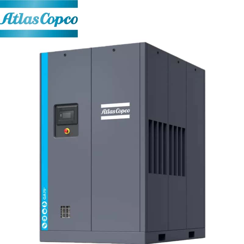 Atlas Copco GA75+ is a premium stationary electric screw air compressor, featuring IE4 super-efficient motor, integrated air treatment, and 8,000-hour long service interval. This Atlas Copco GA75+ balances energy savings and reliability, suitable for heavy industrial applications.